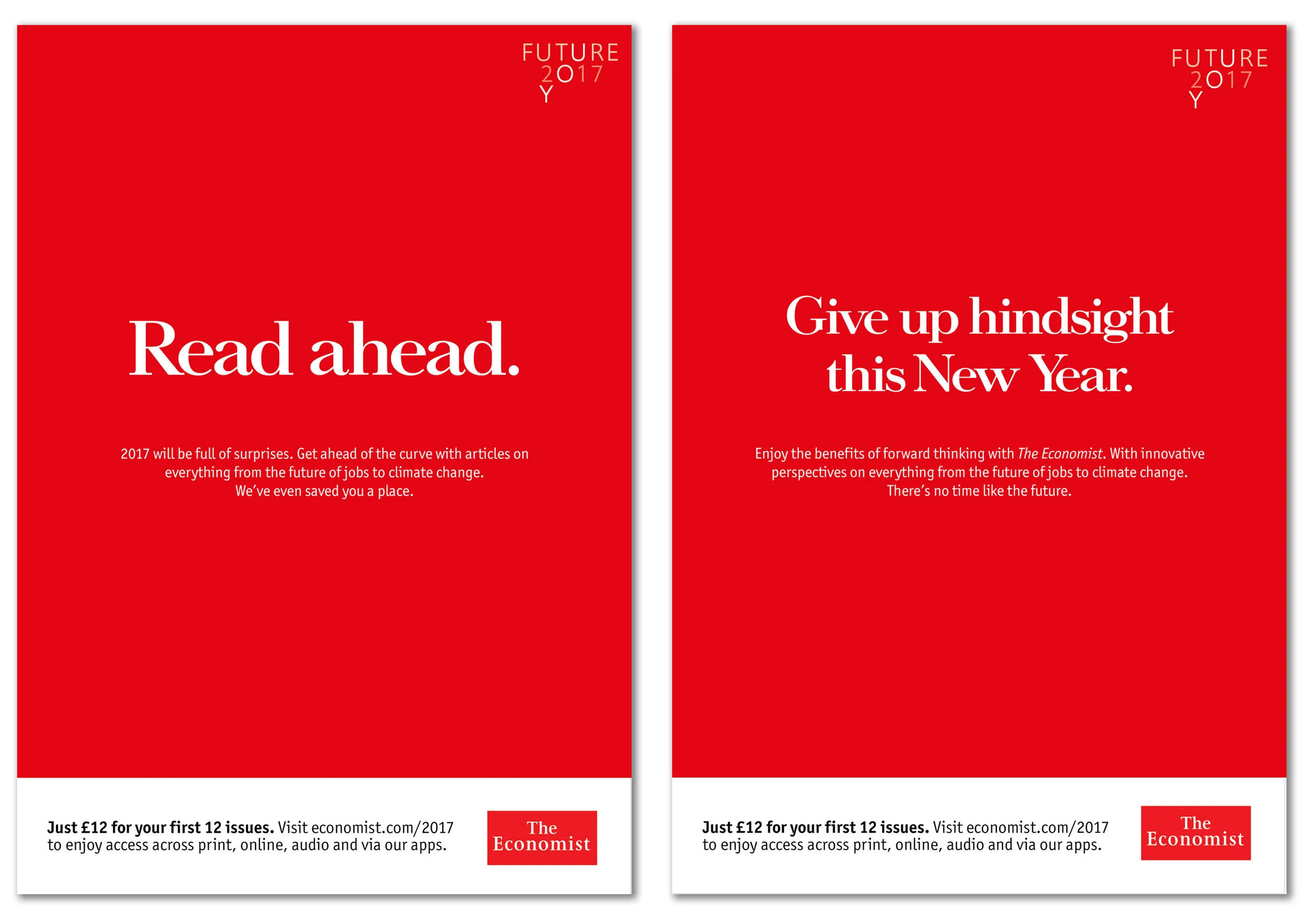 A print campaign to boost subscriptions in the New Year. The insight centred around the fact that people want a quick fix when it comes to their New Years resolutions and The Economist could provide that instantaniously.